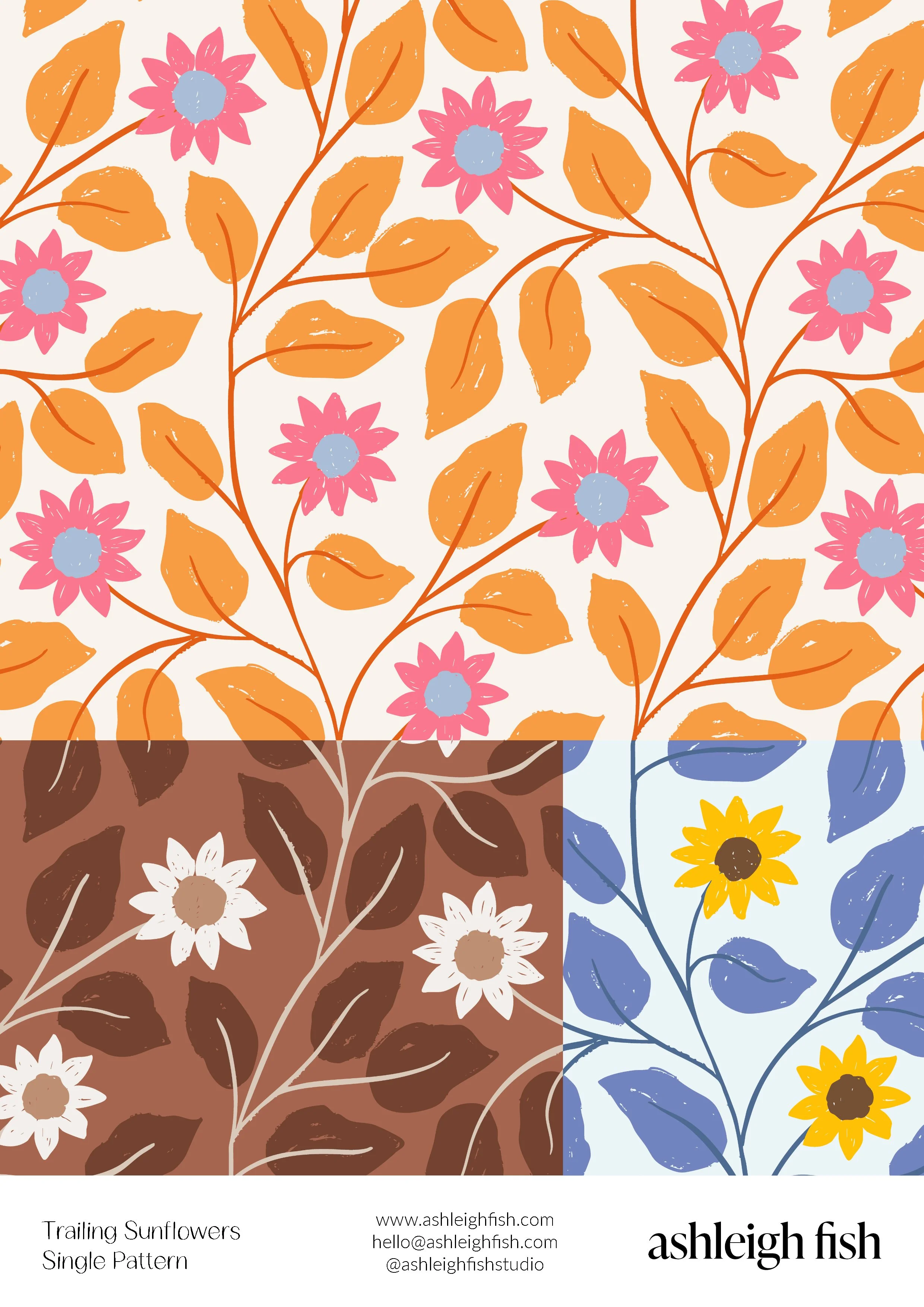 Ashleigh Fish is a professional illustrator, surface pattern designer, and educator specialising in fresh, colourful, and joyful patterns for fabric design, wallpaper, stationery, and children’s art. Known for her sweet yet vibrant style and organic lines, Ashleigh’s work brings personality and playfulness into everyday life, while her workshops and resources make surface pattern design accessible and fun for fellow creatives.